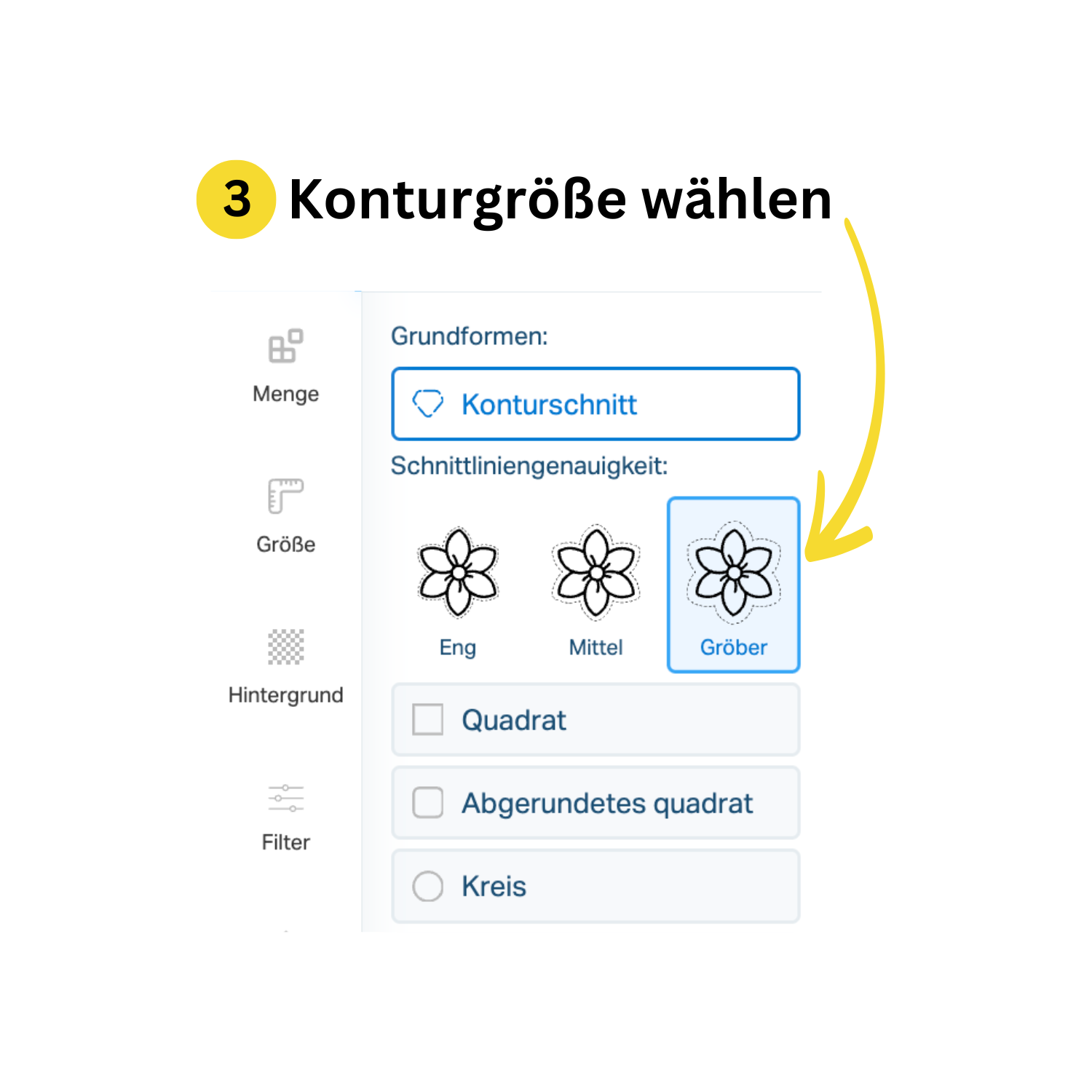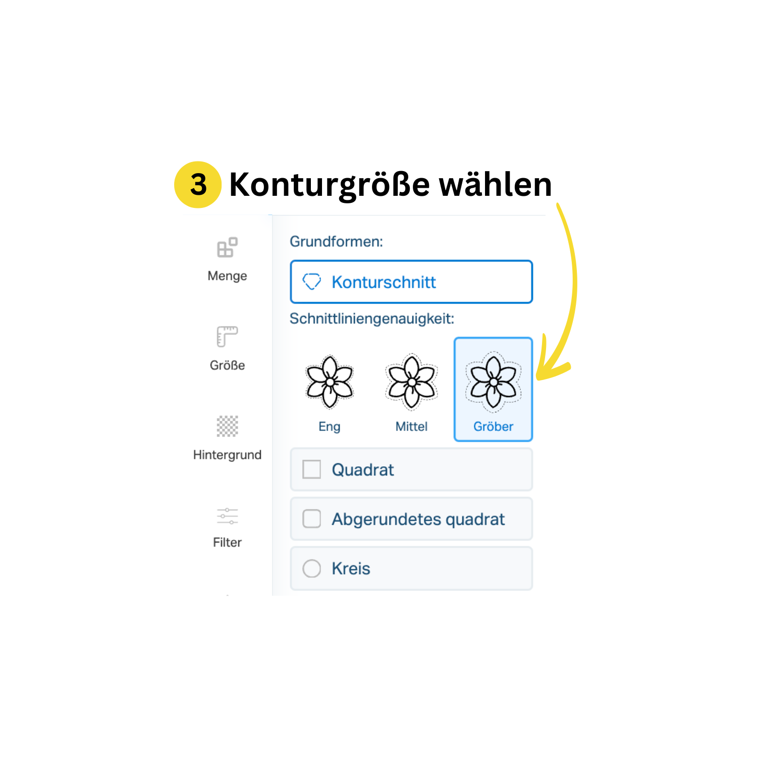 3. Konturgröße wählen