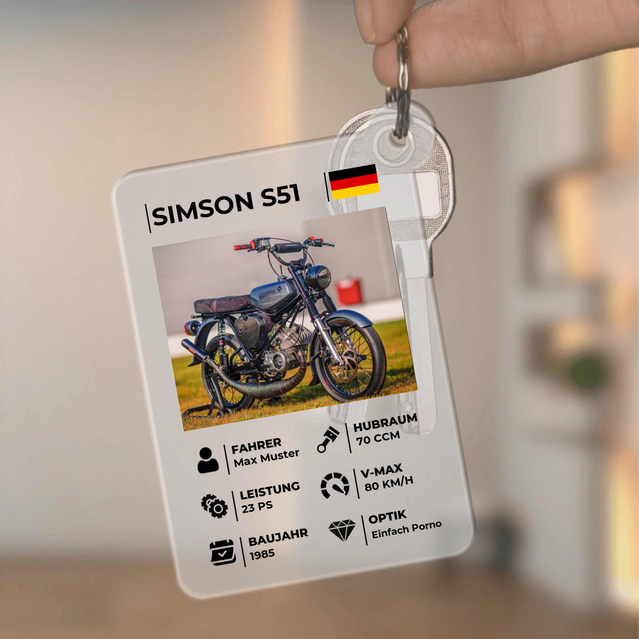 Moped Quartettkarte – Personalisierter Schlüsselanhänger